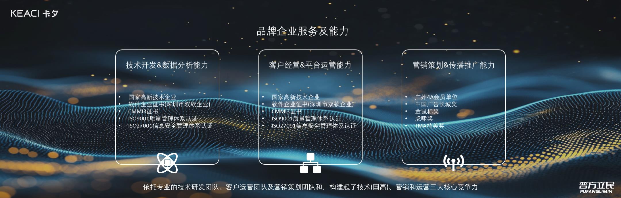 依托先进的数字技术和AI大数据能力、成熟的SAAS级电商平台、完善的产品供应链体系、专业的4A级营销策划及电商运营能力,长期为中国TOP15的银行总行/信用卡中心、三大运营商、四大卡组织、国家电网、头部证券及航空公司等大型企业的客户经营,提供从获客营销、活客运营到客户价值提升的全流程、场景化的企业用户经营整体解决方案。